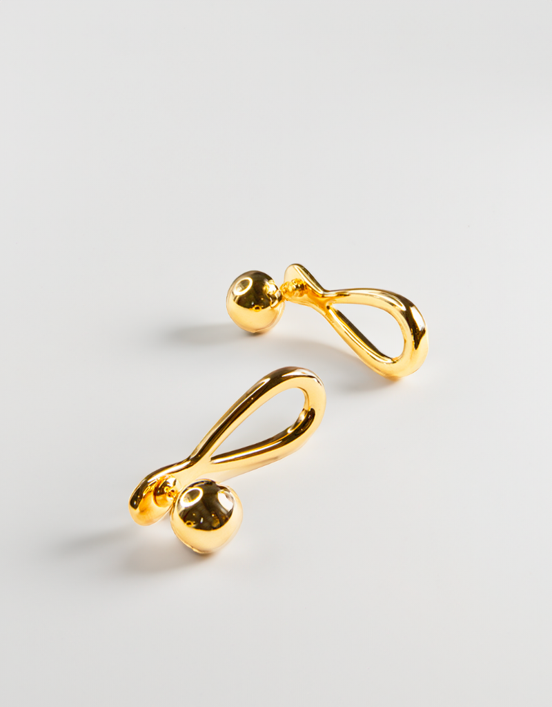 These stunning earrings feature a smooth sphere stud accented with a teardrop loop, creating an elegant and sophisticated look.
